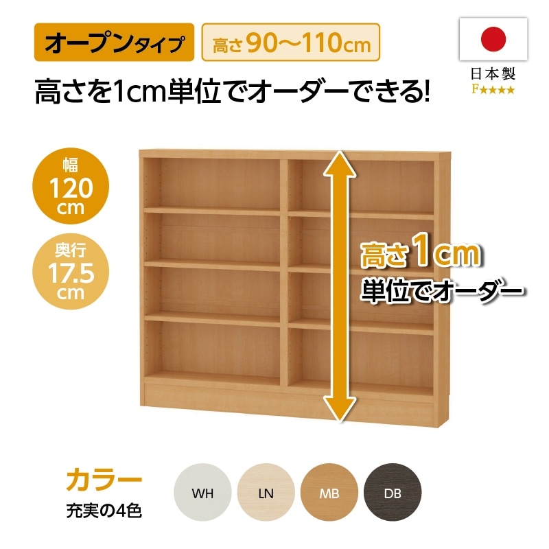 【お客様組立商品】カウンター下・窓下収納CSオープンタイプ (幅120㎝×奥行17.5㎝×高さ90-110㎝) CS90-11012 S/幅木よけ