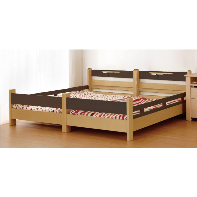 ヘッド・フットボードを組み替えるだけで、同じ高さのシングルベッドに。ベッドは2つに分けられるので、成長したら別の部屋で使うことができます。