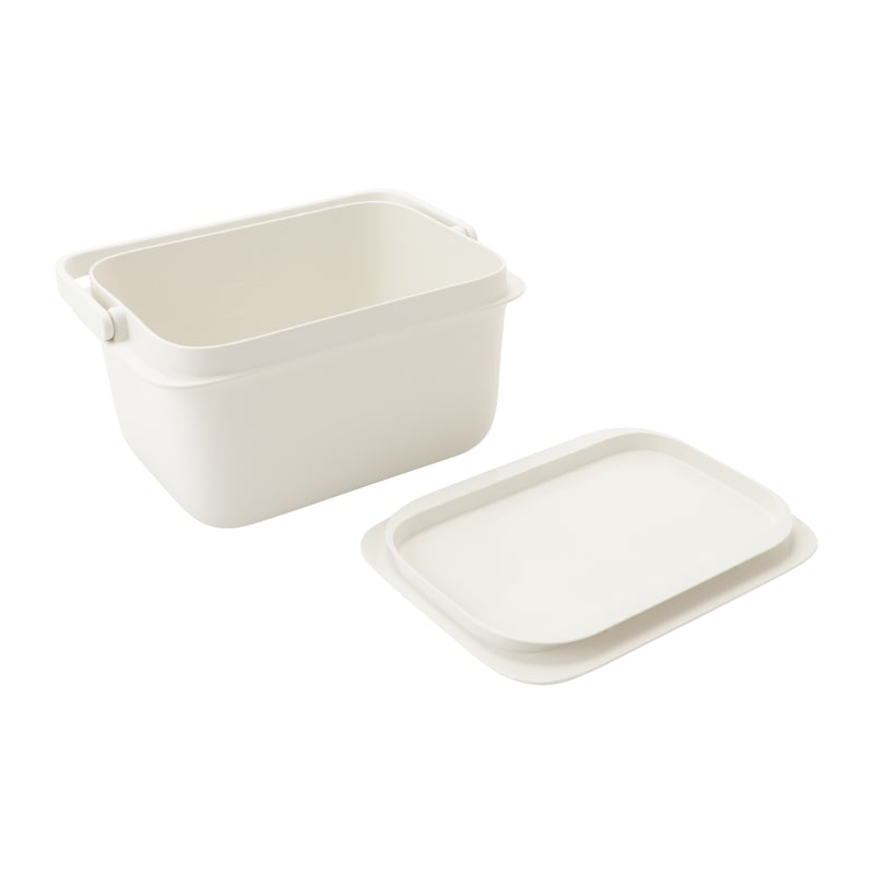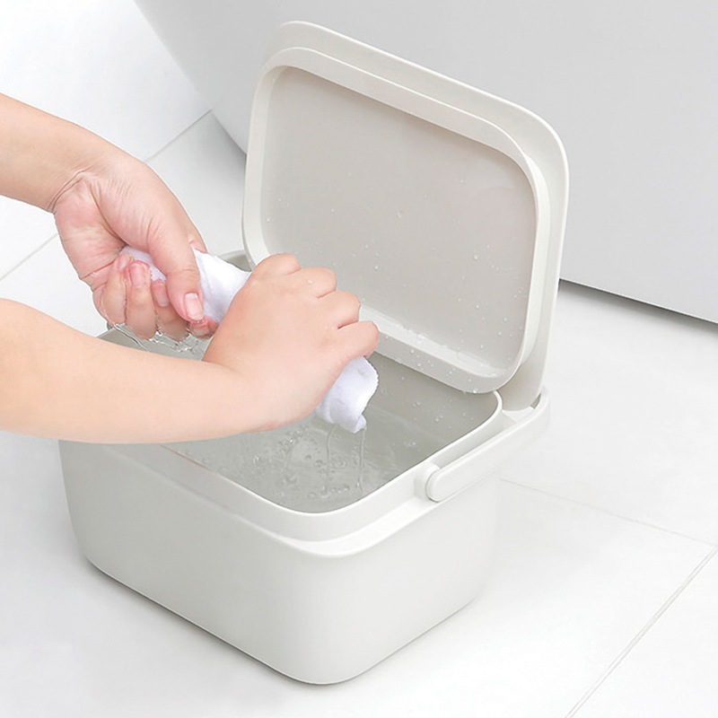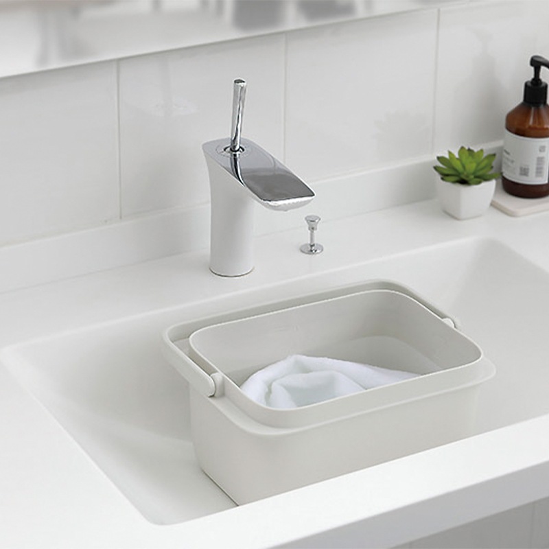 洗面台で水が入れやすく、浸け置き・掃除にちょうどいいコンパクトサイズのスクエア型バケツ。