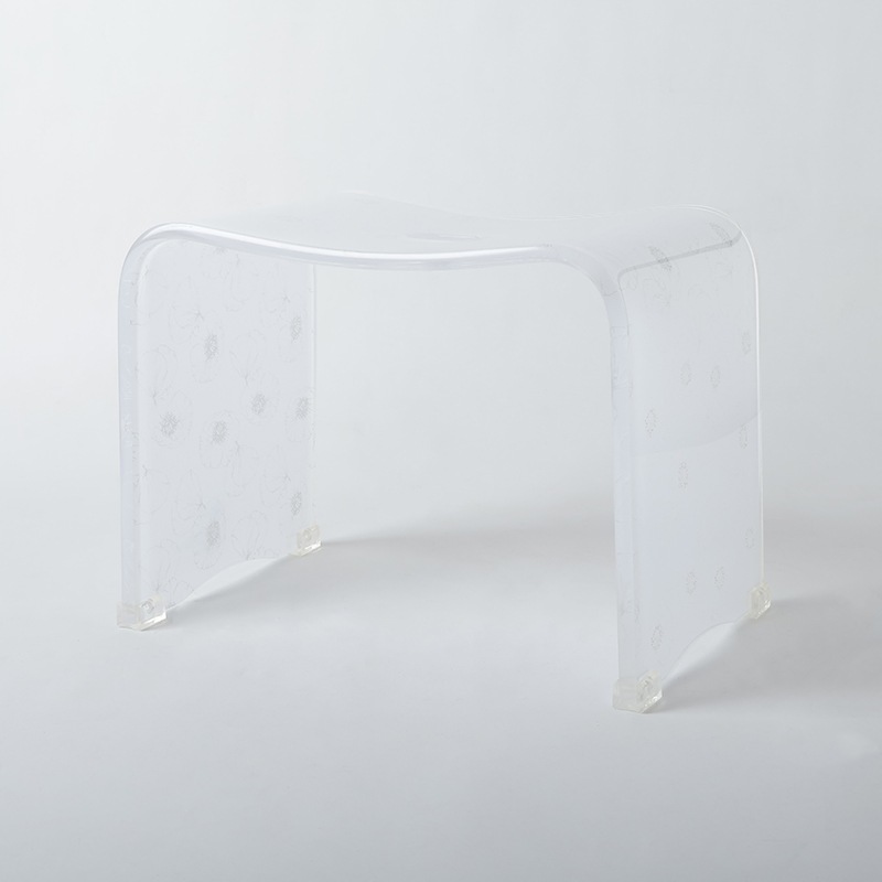 シンプルな色遣いにポピーの柄がはえるバスチェアです。