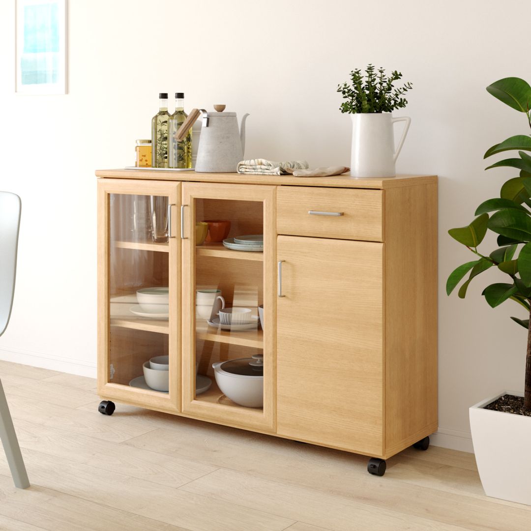 ガラス扉は収納物が見やすく、食器やストック品などの収納におすすめ。