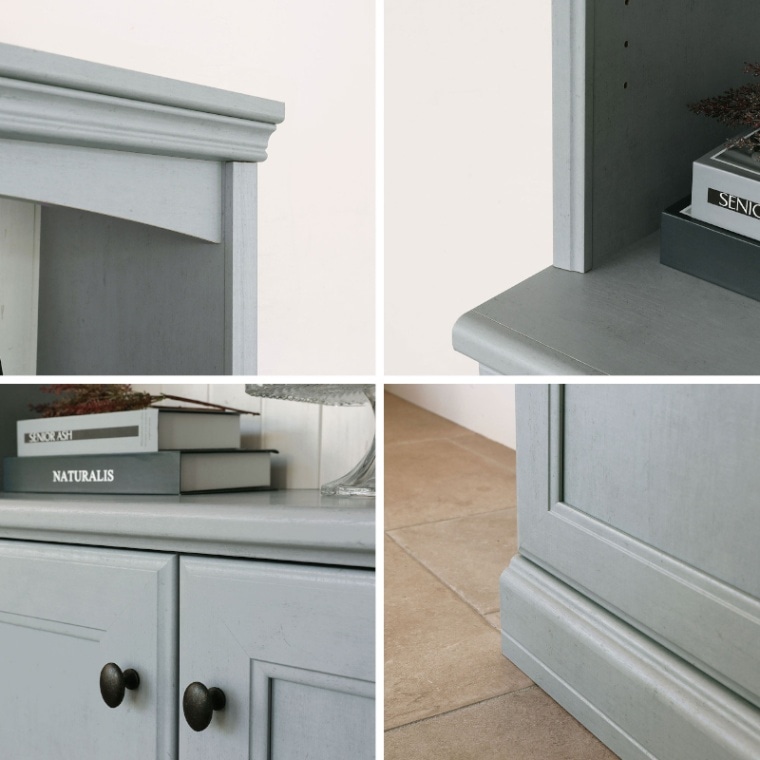 上部のアーチ形状や細部のアンティークな形状が目を引いてお気に入りの雑貨のディスプレイを楽しめます。