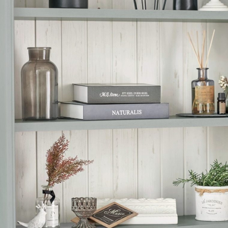 ディスプレイしたアンティーク雑貨が映えるデザインになっています。