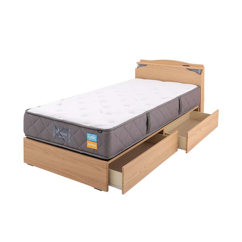 引き出しが2杯ついているため、衣類や季節ものの寝具などをお好みで収納することができます。