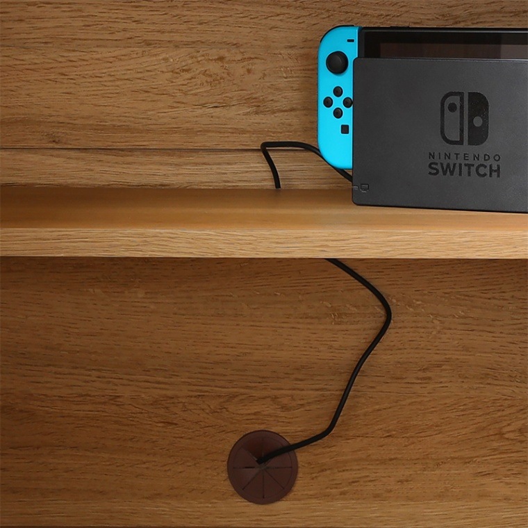 コードを下に通すことができるので、Wi-Fiルーターやゲーム機を移動棚の上にも収納できます。