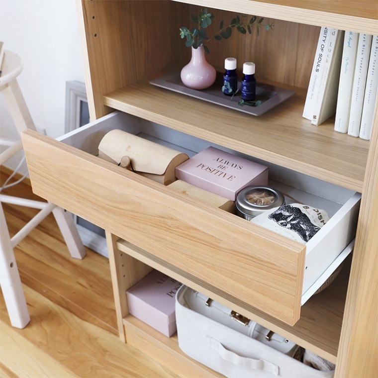 小物の収納に便利な引き出し1が杯付いており、細かなリビング小物を引き出しに入れて、すっきり収納できます。
