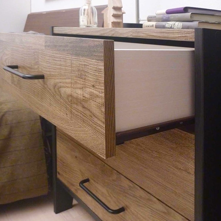 金属レールを使った引き出しは滑らかな開閉で、耐久性にも優れています。