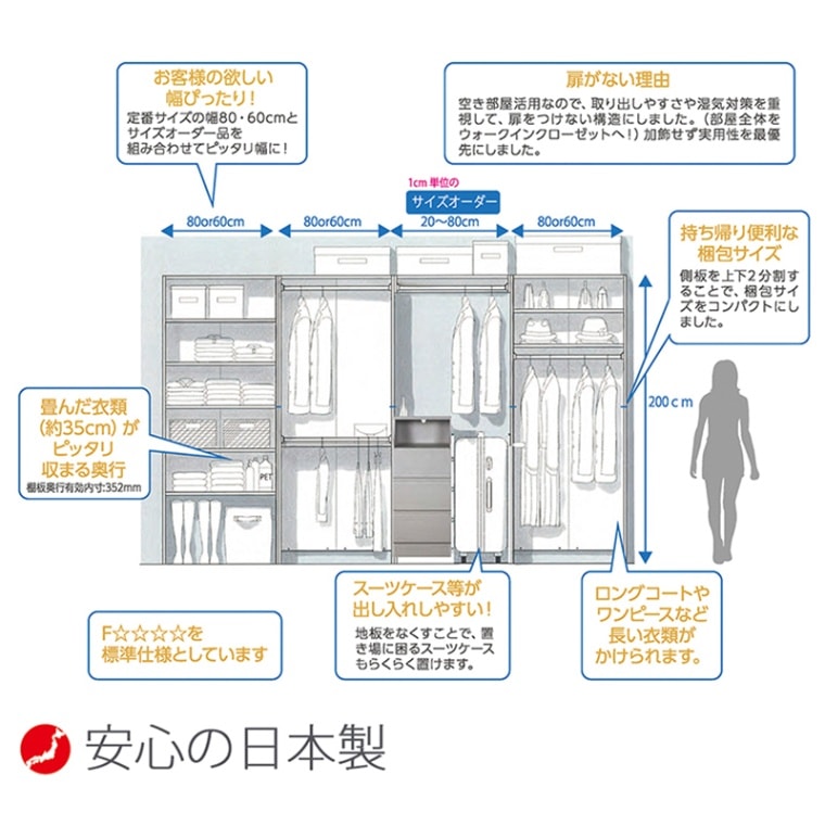長期間閉めきった空間で使われることを考慮した低ホルムアルデヒド設計なので、安心して使用できます。