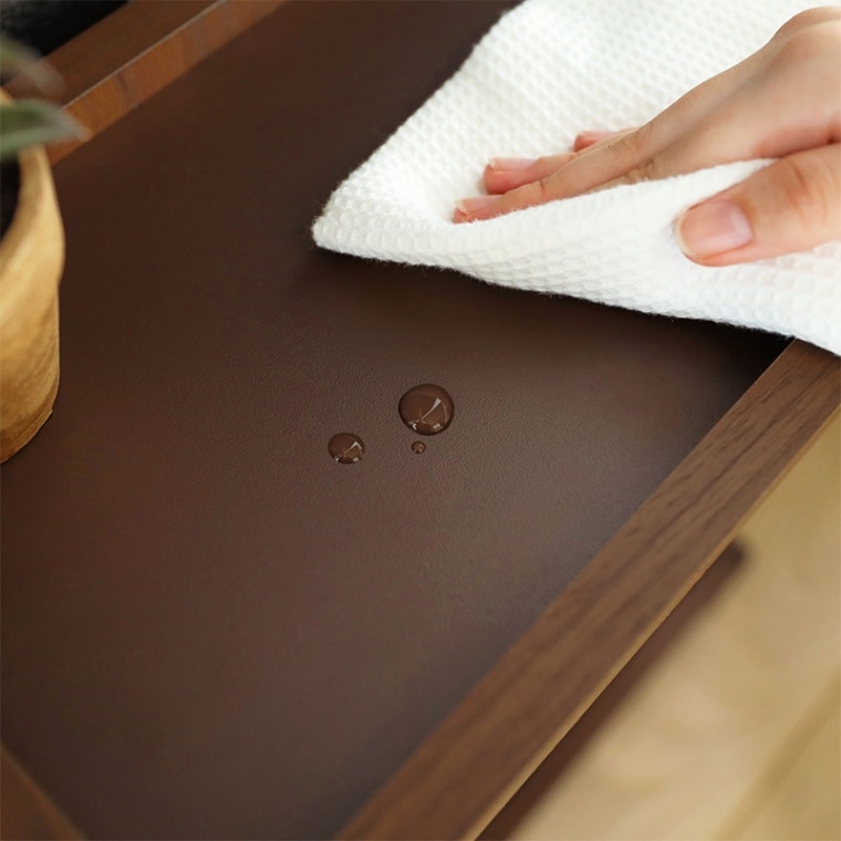 天板の素材は、水や汚れに強いメラミンです。さっと拭き取って綺麗に保つことができます。