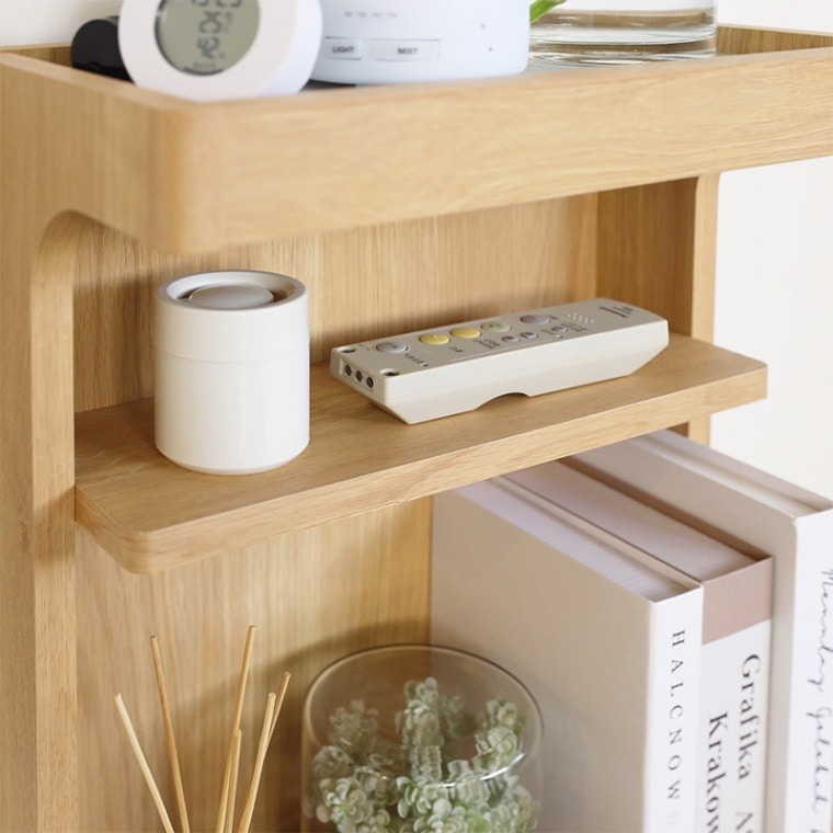 奥行21.1cmのスリムタイプです。ベッドと壁や他の家具の間の狭いスペースに置いて使えます。