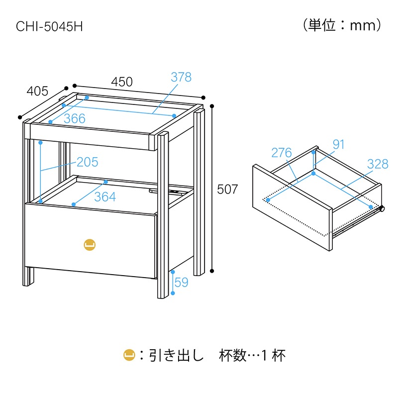 天板の素材は、水や汚れに強いメラミンです。さっと拭き取って綺麗に保つことができます。