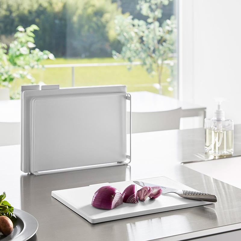 まな板:ポリプロピレン、滑り止め:エラストマー、スタンド:スチール(ユニクロメッキ+粉体塗装)