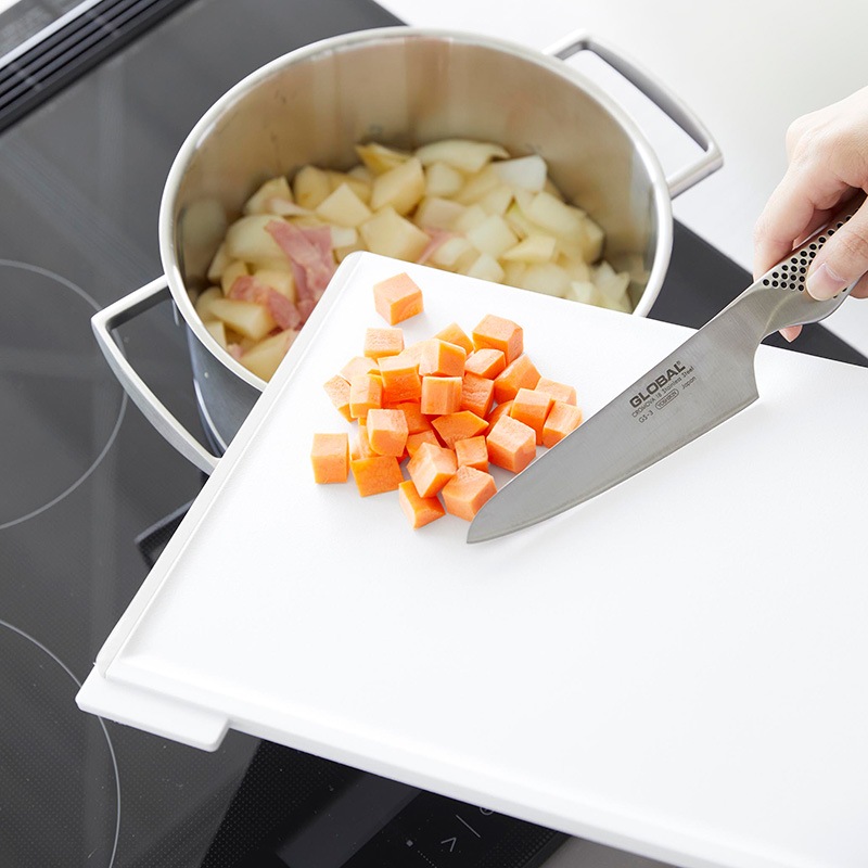 片面はフラット、もう片面はフチ付きという嬉しい仕様で、食材をスムーズにカット。