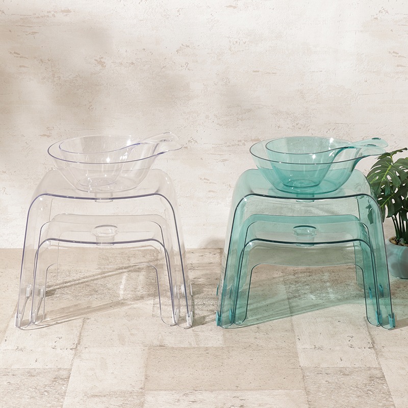 浴室をすっきりと見せてくれる、美しい透明感が魅力のバスチェア「カラリ コシカケ30H」。