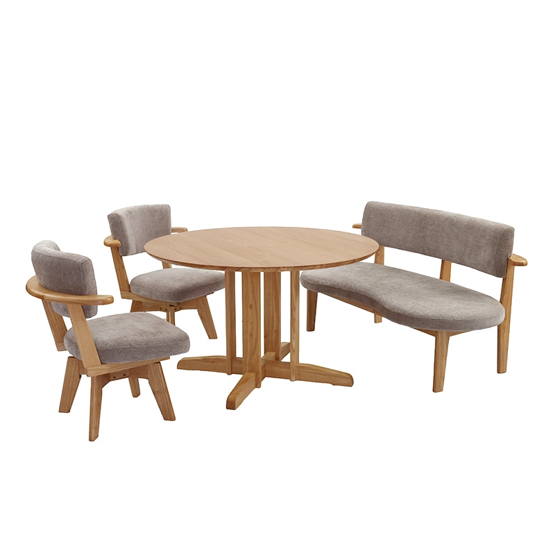 ダイニング4点セット DARTS3 110丸+回転アームチェア2脚+背付ベンチ NA/IV【大型商品配送】※単品販売有
