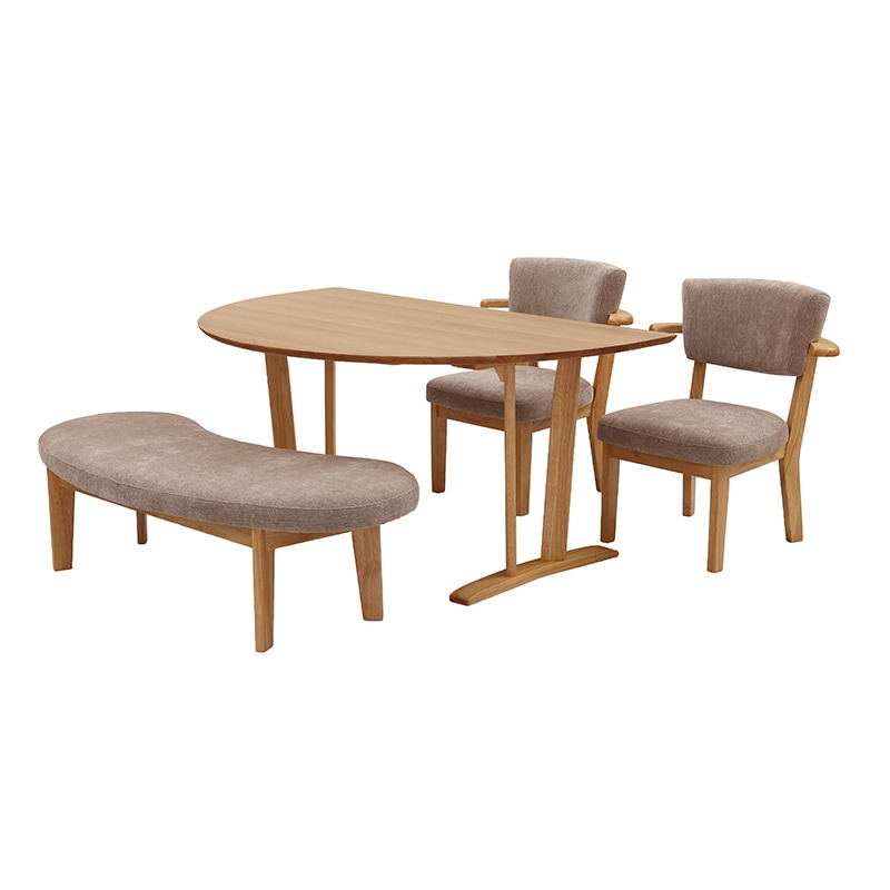 ダイニング4点セット DARTS3 145半円テーブル+アームチェア2脚+ベンチ NA/IV【大型商品配送】