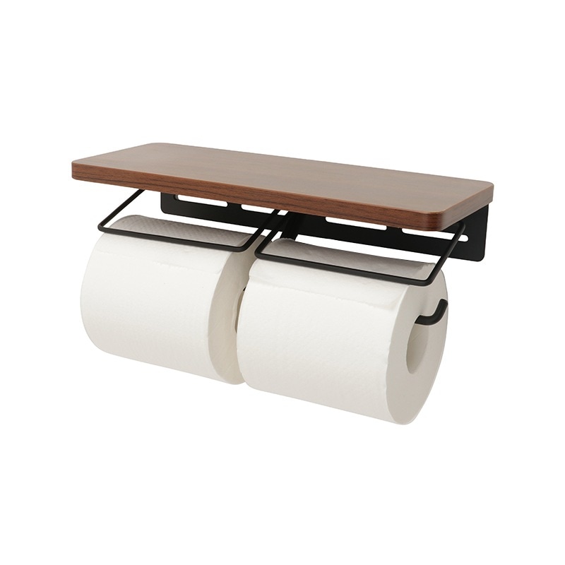 ペーパーホルダー ウッド&スチール 棚付き BR 2連