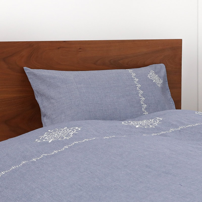 ピロケース IKS COLLECTION パルテール 43X63cm 刺繍のボタニカルデザイン