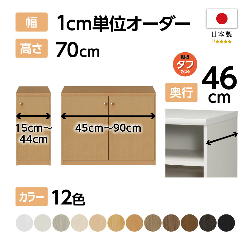 【お客様組立商品】オーダーラック扉付き奥行46cmラージタイプ〔標準棚板〕 (高さ70cm×幅15-70cm) ODR7015-70D/扉70 ※サイズにより価格が異なります。