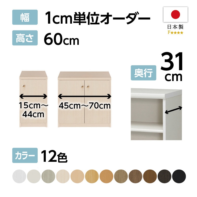 【お客様組立商品】オーダーラック扉付き奥行46cmラージタイプ〔標準棚板〕 (高さ60cm×幅15-70cm) ODR6015-70D/扉60 ※サイズにより価格が異なります。