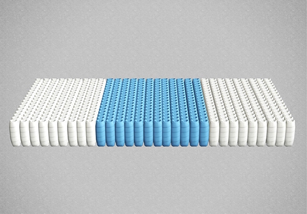 今までになかった、シモンズとして初めての 腰部硬くした3ゾーンマットレス。 硬めのコイルで腰の沈み込みを抑えることで 理想の寝姿勢を保つことが可能。
