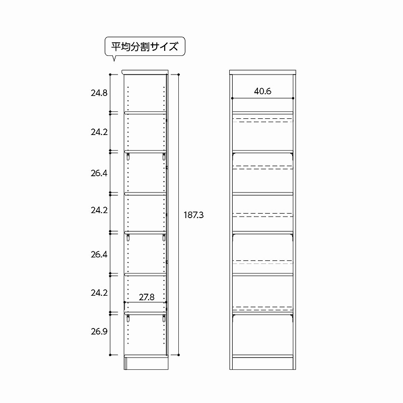 移動棚:3枚 移動固定棚 : 3枚 棚板ピッチ:3cm