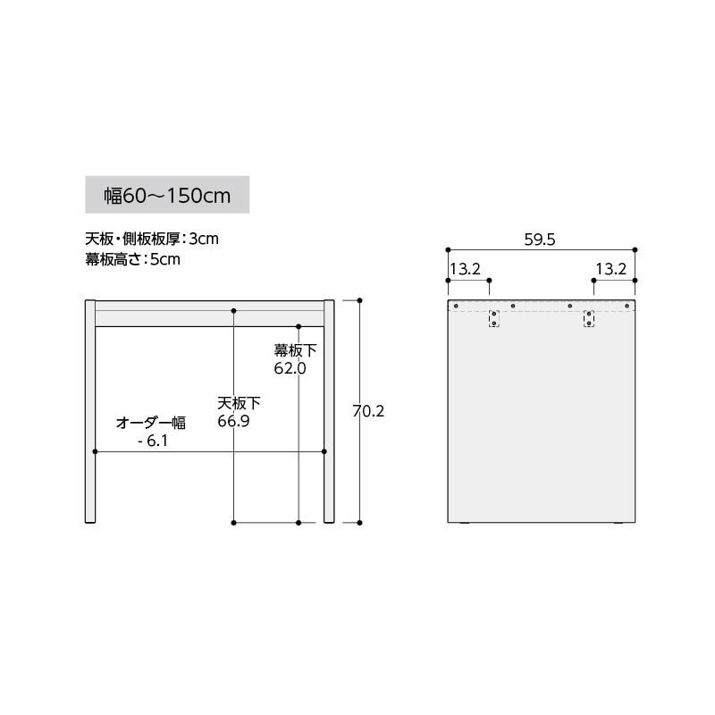 幅:91~150cm(1cm単位) 奥行:59.5cm 高さ:70.2cm