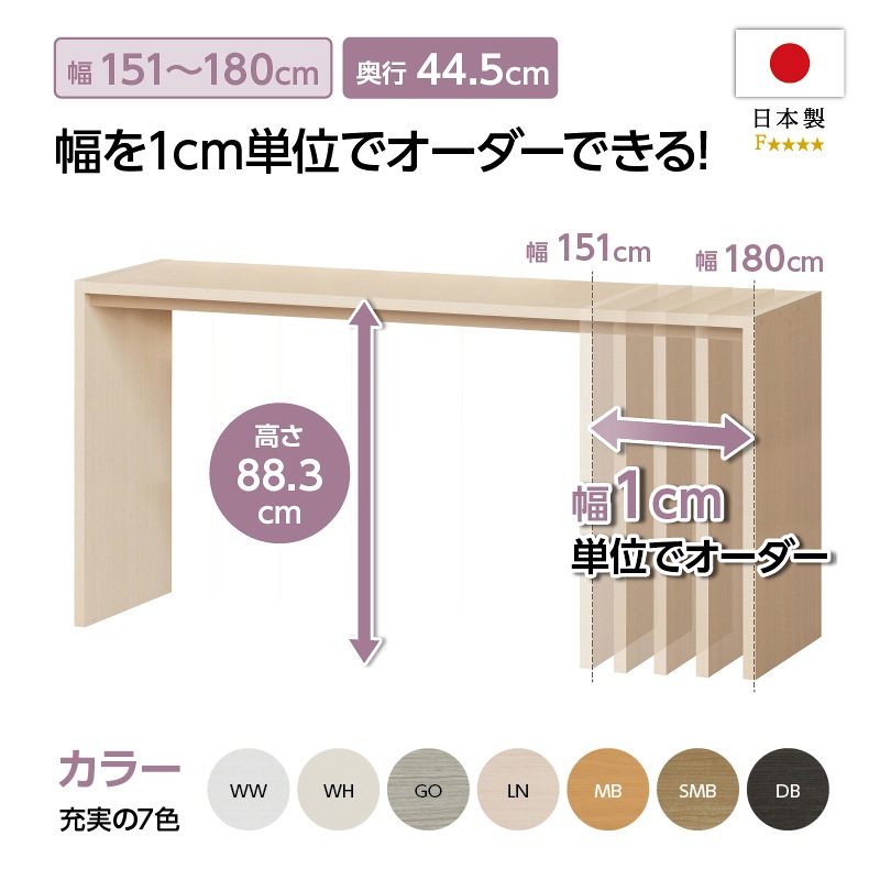 幅:151~180cm(1cm単位) 奥行:44.5cm 高さ:88.3cm