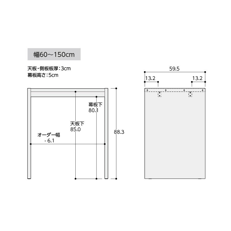 幅:60~90cm(1cm単位) 奥行:59.5cm 高さ:88.3cm