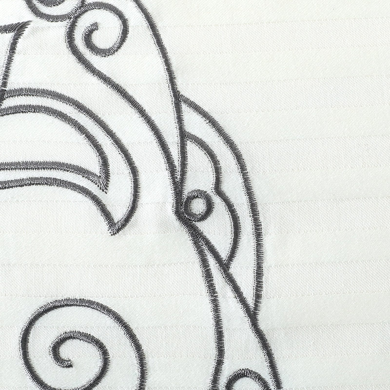 ストライプ柄に刺繍を合わせた上品なデザインが特徴的。