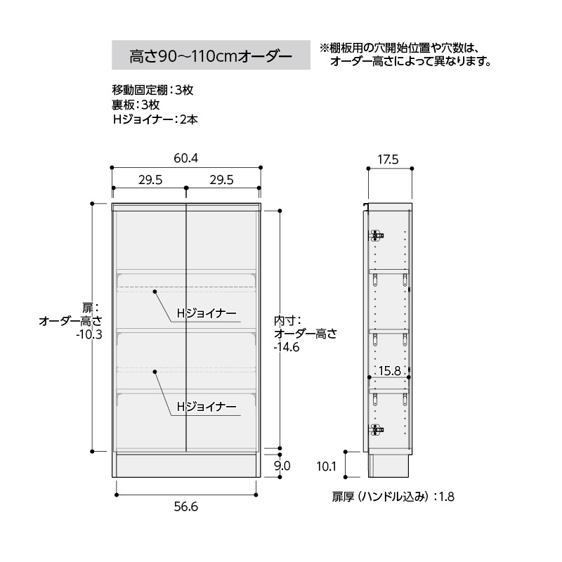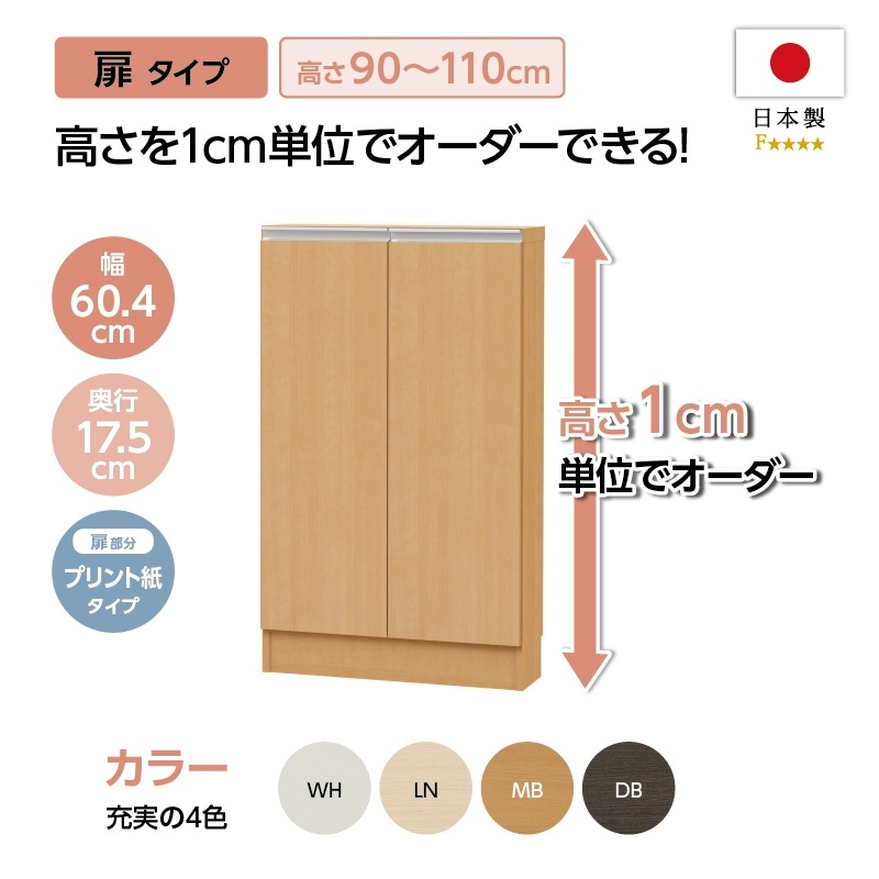 【お客様組立商品】カウンター下・窓下収納CS扉プリントタイプ (幅60.4㎝×奥行17.5㎝×高さ90-110㎝) CS90-11060 S/扉V60type/幅木よけ
