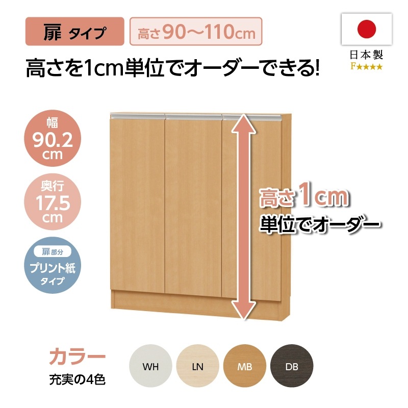 【お客様組立商品】カウンター下・窓下収納CS扉プリントタイプ (幅90.2㎝×奥行17.5㎝×高さ90-110㎝) CS90-11090 S/扉V90type/幅木よけ