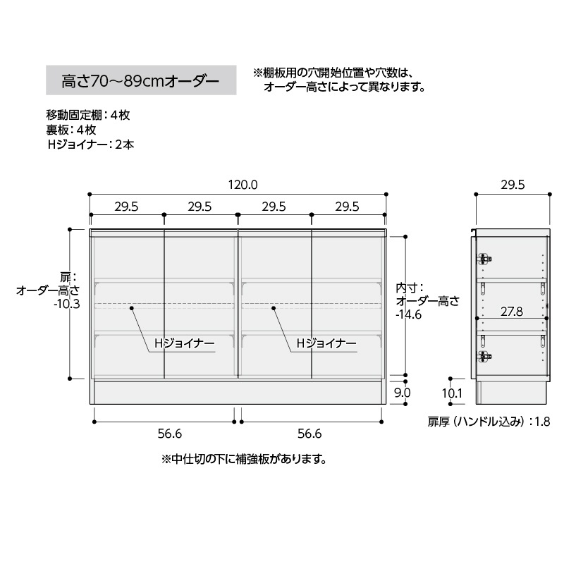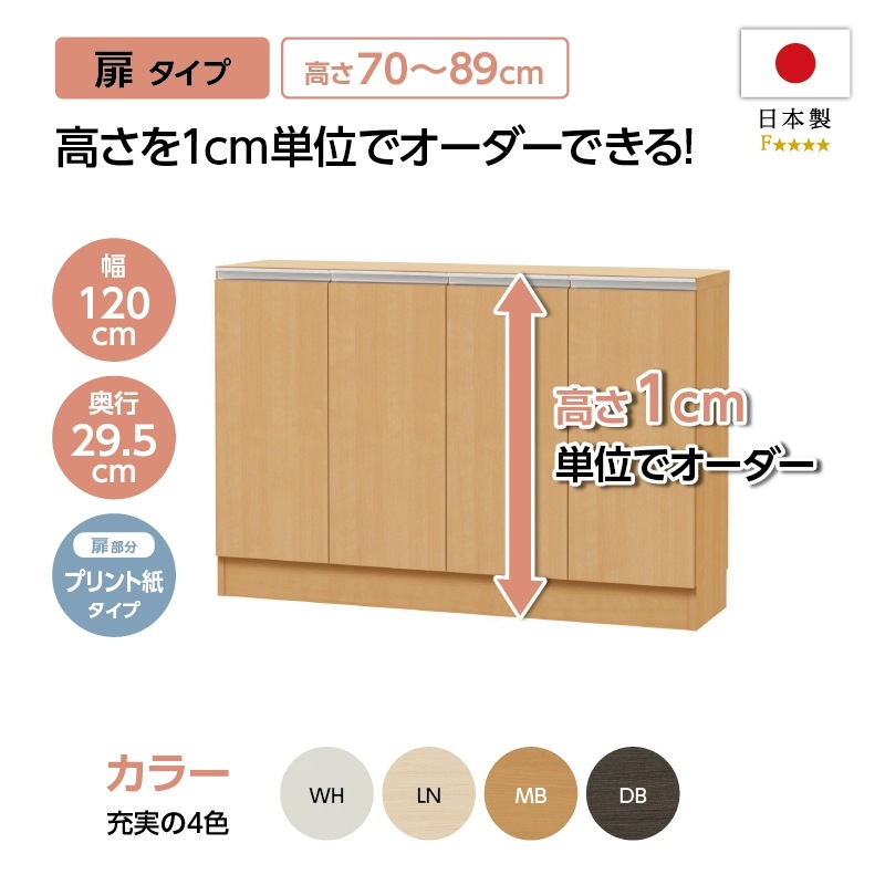 【お客様組立商品】カウンター下・窓下収納CS扉プリントタイプ (幅120㎝×奥行29.5㎝×高さ70-89㎝) CS70-8912 R/扉V120type/幅木よけ