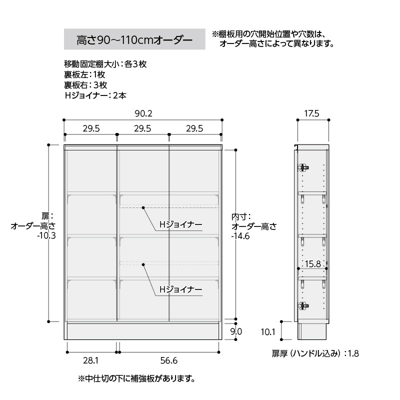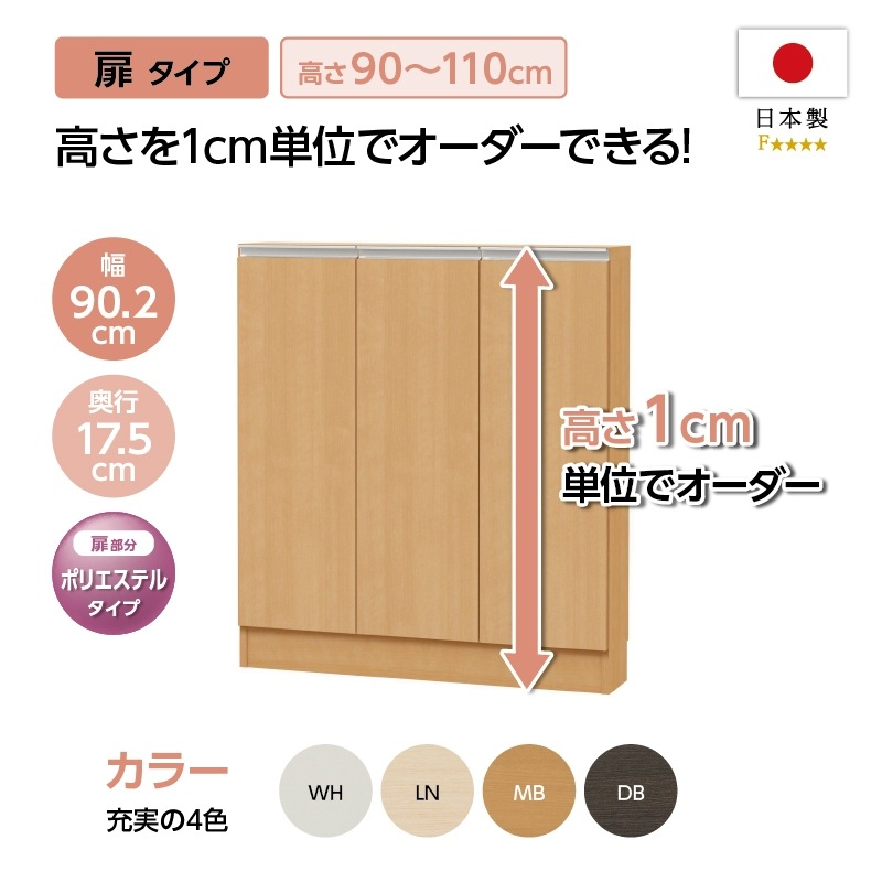 【お客様組立商品】カウンター下・窓下収納CS扉ポリタイプ (幅90.2㎝×奥行17.5㎝×高さ90-110㎝) CS90-11090 S/扉90type/幅木よけ