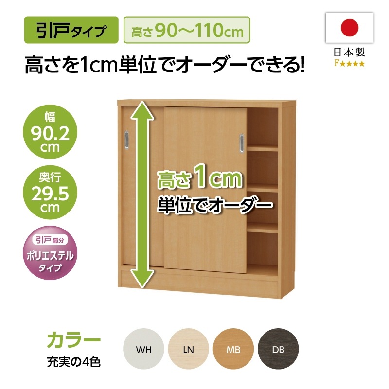 【お客様組立商品】カウンター下・窓下収納CS引戸ポリタイプ (幅90.2㎝×奥行29.5㎝×高さ90-110㎝) CS引戸90-11090 /幅木よけ