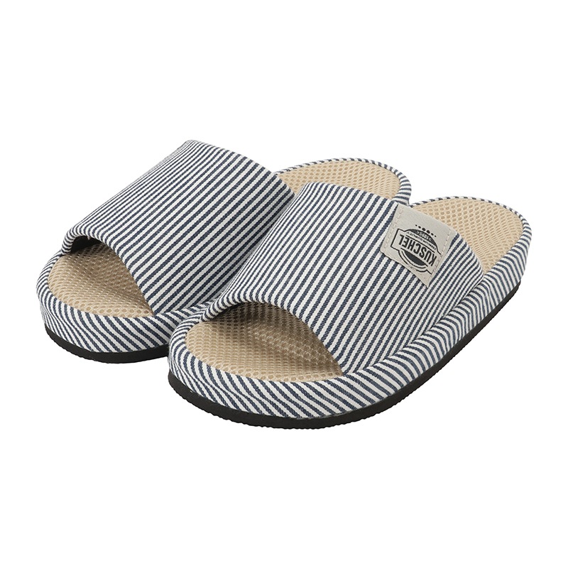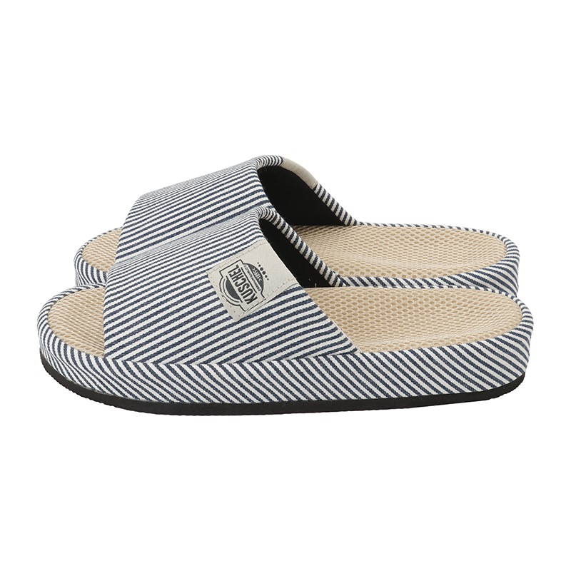 さわやかな青と白のストライプが魅力のヒッコリー生地のスリッパ。