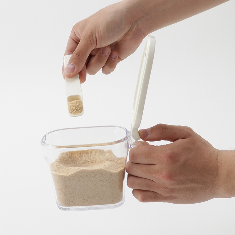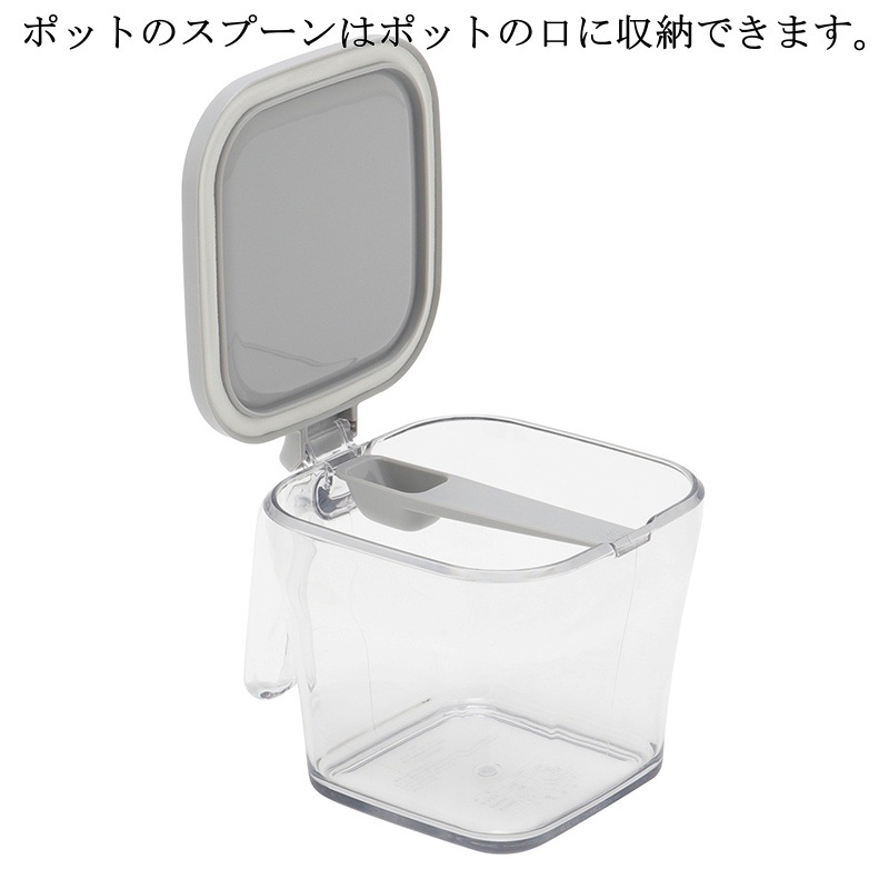 小さじ1杯分のスプーンが付いておりポットの口に収納できるので手を汚さずに使用できます。