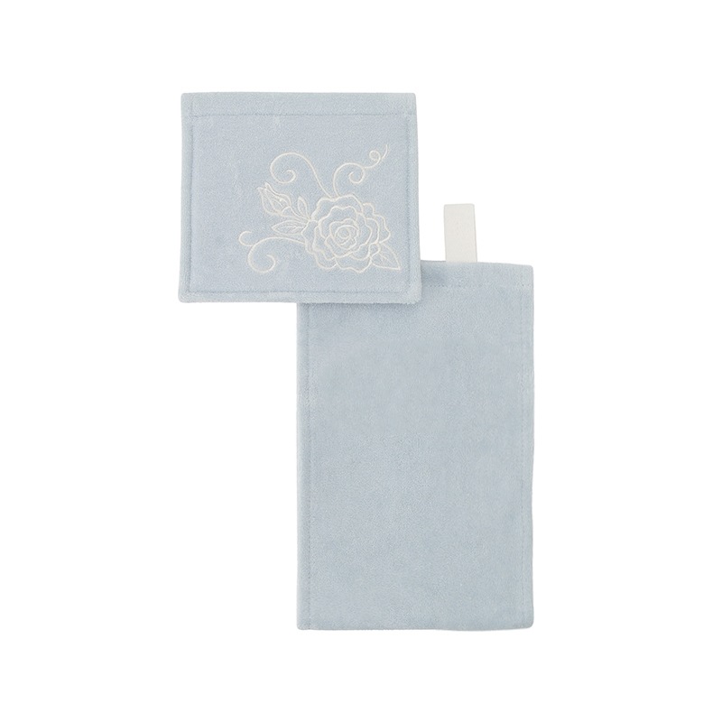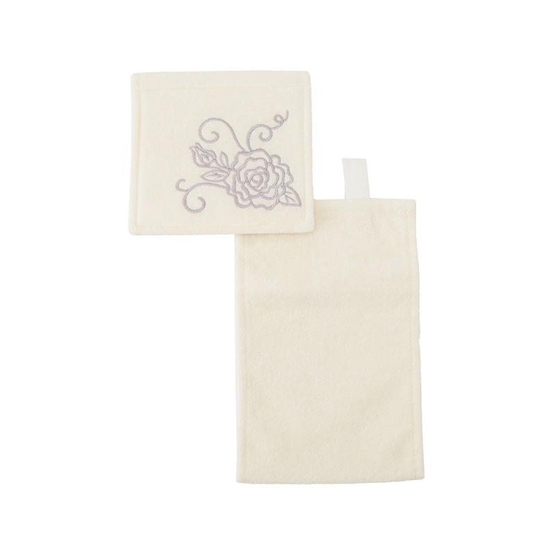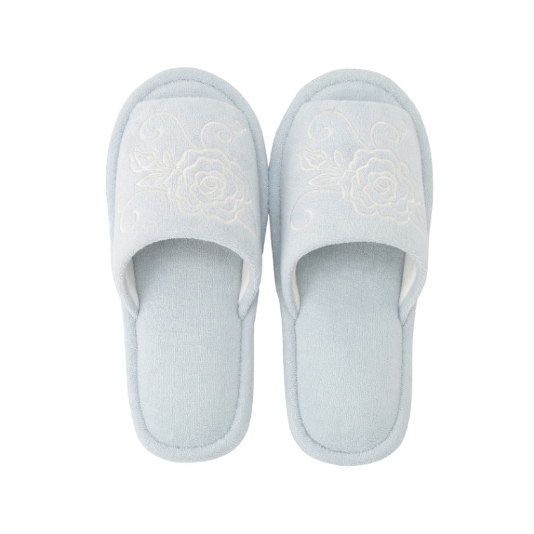 上品で愛らしいローズ刺繍をあしらい、華やかなデザインに仕上げています。