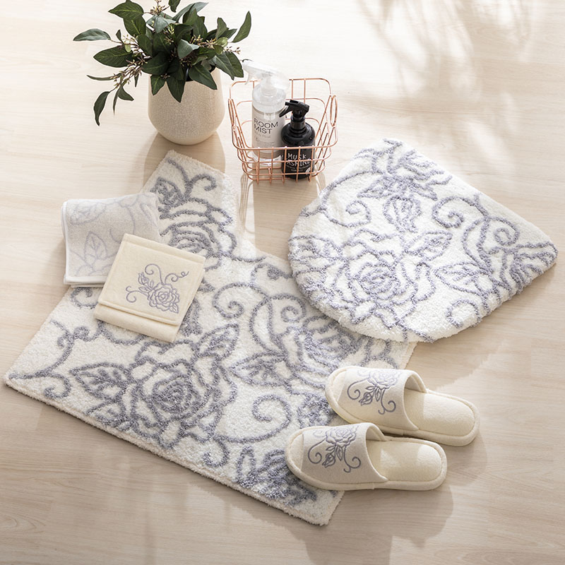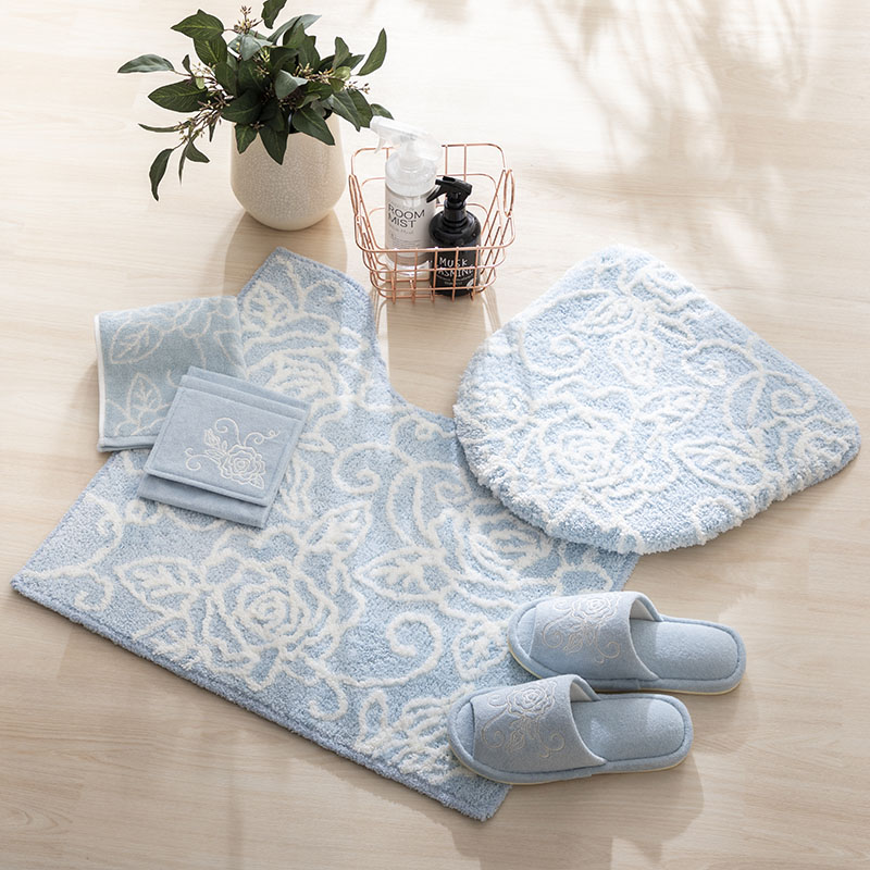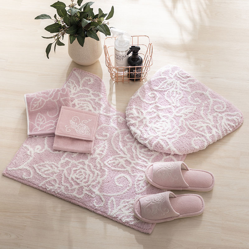 同シリーズのトイレマット、ハンドタオル、スリッパとトータルコーディネートしていただけるアイテムです。