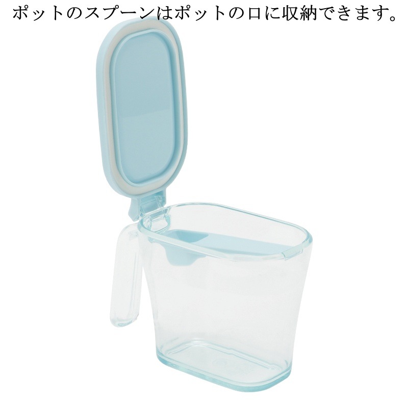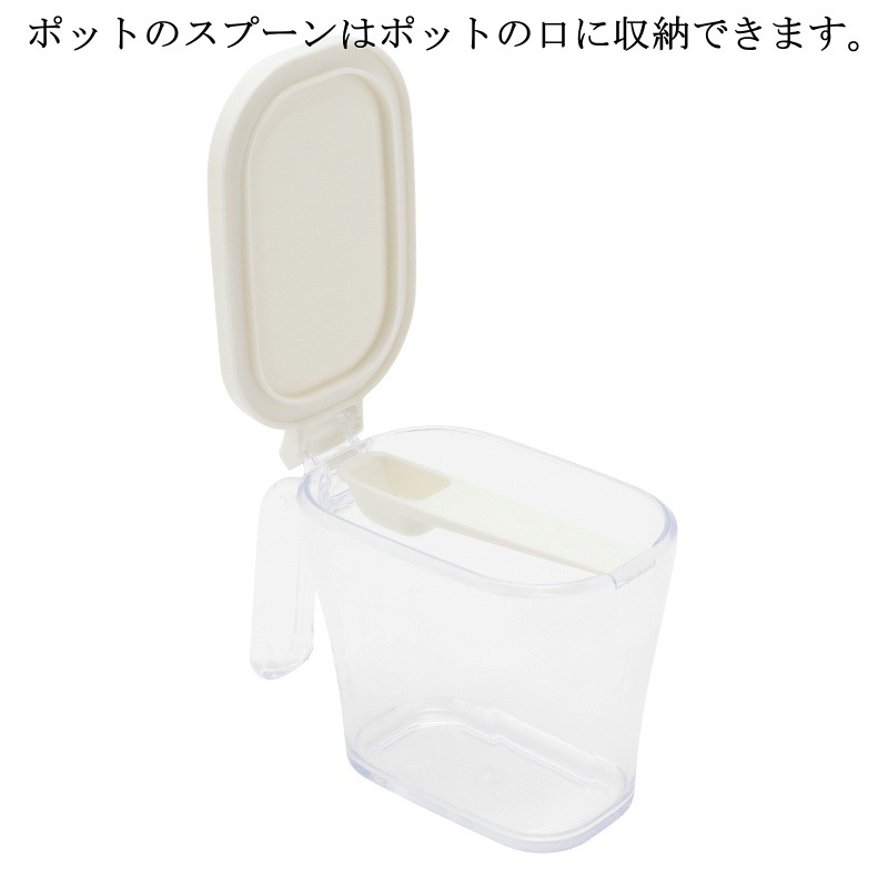 小さじ1杯分のスプーンが付いておりポットの口に収納できるので手を汚さずに使用できます。