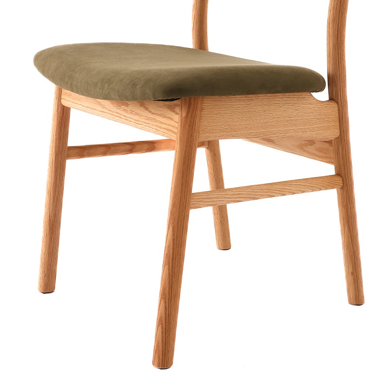 木目が美しいオーク材と、柔らかな布地を掛け合わせた商品。