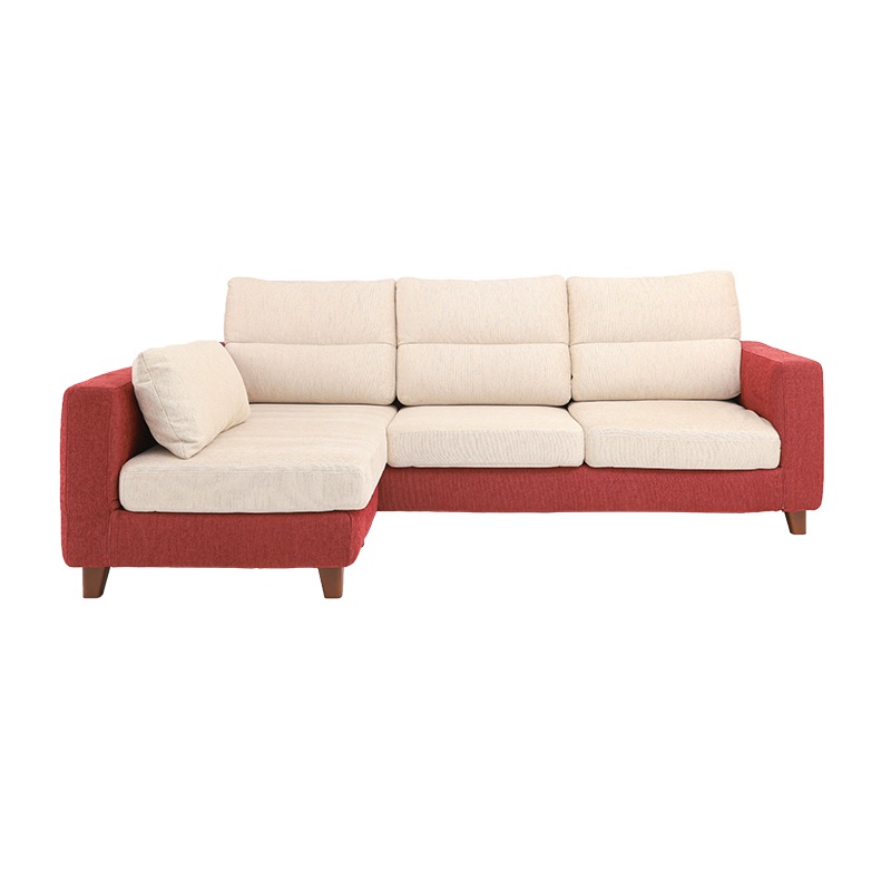 並んで座れる部分と足を伸ばして座れる部分のあるL字型のデザインです。もちろん横になってもOK。