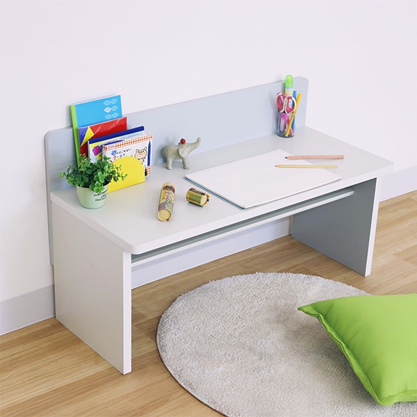 すっきりしたデザインで成長に合わせて長く使え、大きな自由画帳を広げても余裕のある奥行でお絵描きからお勉強まで活躍するデスクです。