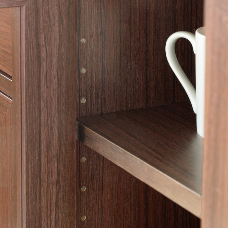移動棚は2枚。3cm間隔で調整できるので収納したいものに合わせて調整可能です。