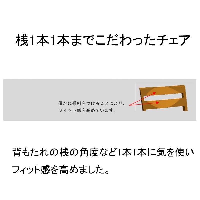 座り心地にもこだわり、1本1本にまでこだわった桟がしっかりとしたサポートを提供します。