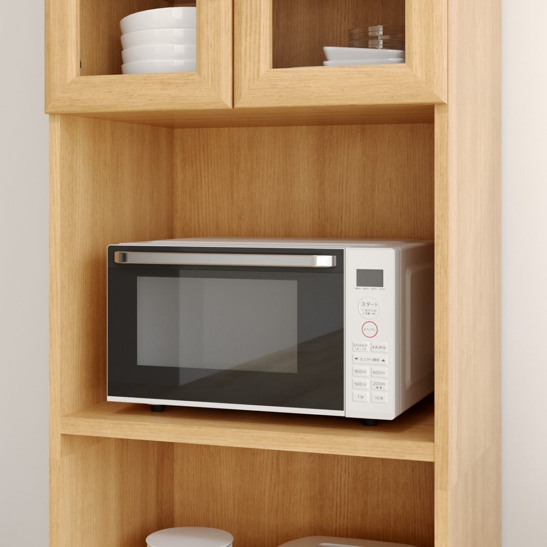 電子レンジや炊飯器などキッチン家電をまとめて収納できるキャビネットです。