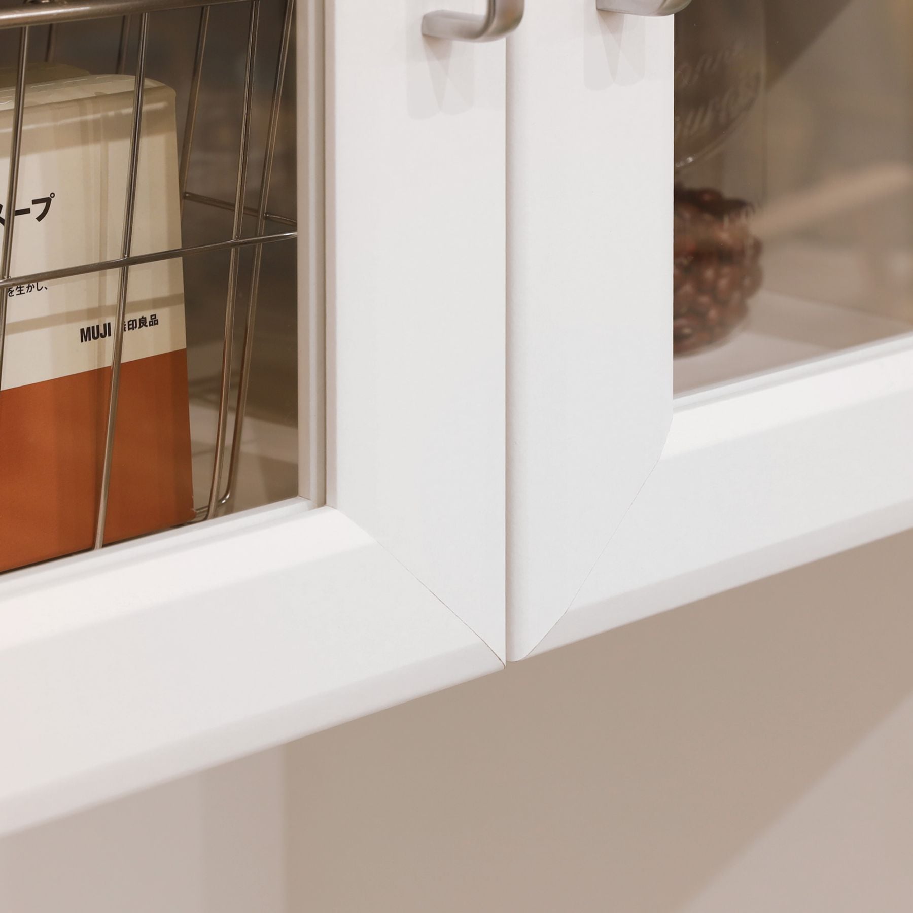 上部のガラス扉は収納物が見やすく、食器やストック品などの収納におすすめ。