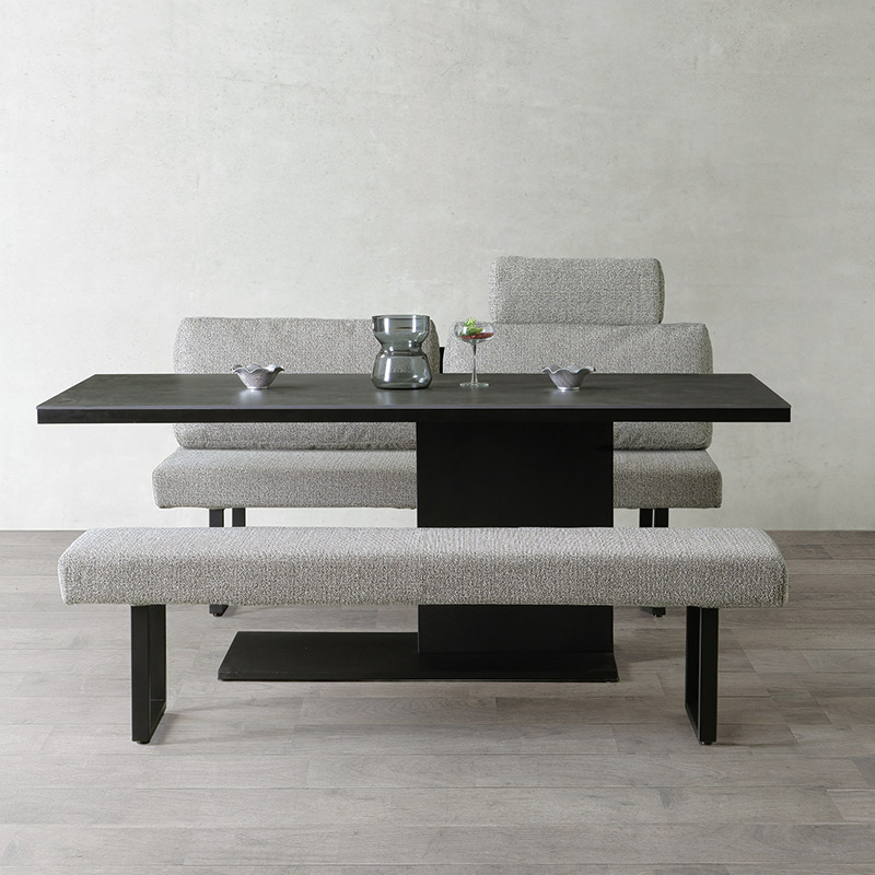 リビングダイニング4点セット アデルⅡテーブル180DT BK + LDチェア160DC + LDベンチ160BC GRA + ヘッドレストⅡGRA【大型商品配送】【要設置注意】