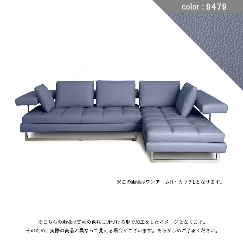 カウチソファ(ワンアームR・カウチL) ISOLA2 0071AM1-4RA 9425 LGY+0071AM1-LXLW 9425 LGY Orvieto 総本革(厚革1.3ミリ) KELVIN GIORMANI ケルビン ジョルマーニ【大型商品配送便でのお届け】