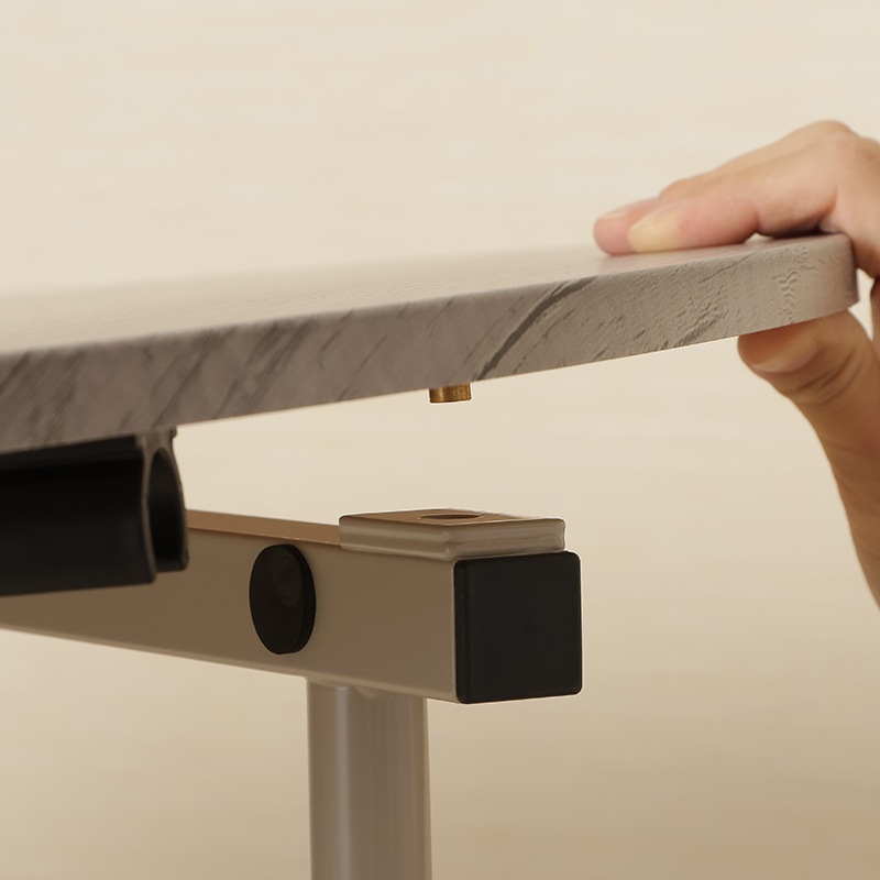 グレーの木目柄の天板&ベージュの支柱が絶妙にマッチし、